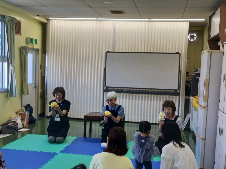<レポート>おはなし会 (10月) 投稿日 2025年11月25日 著者 nishiyodo カテゴリー プラザ抽選結果&レポート 開催日2025/10/17時間11:00~11:20参加者9組 計25名(乳幼児13名 保護者9名 ボランティア3名)今回は0歳から3歳の乳幼児が参加されました。年齢に合わせた絵本をボランティアの方が選んでくださり、子どもたちは興味深そうに見入っていました。中でも大型絵本の「だるまさんが」と「ぴょーん」はいつもどおりみんなで大盛り上がり。次回は、12月19日(金)午前11時から開催を予定しています。予約不要ですので、お気軽にご参加ください。