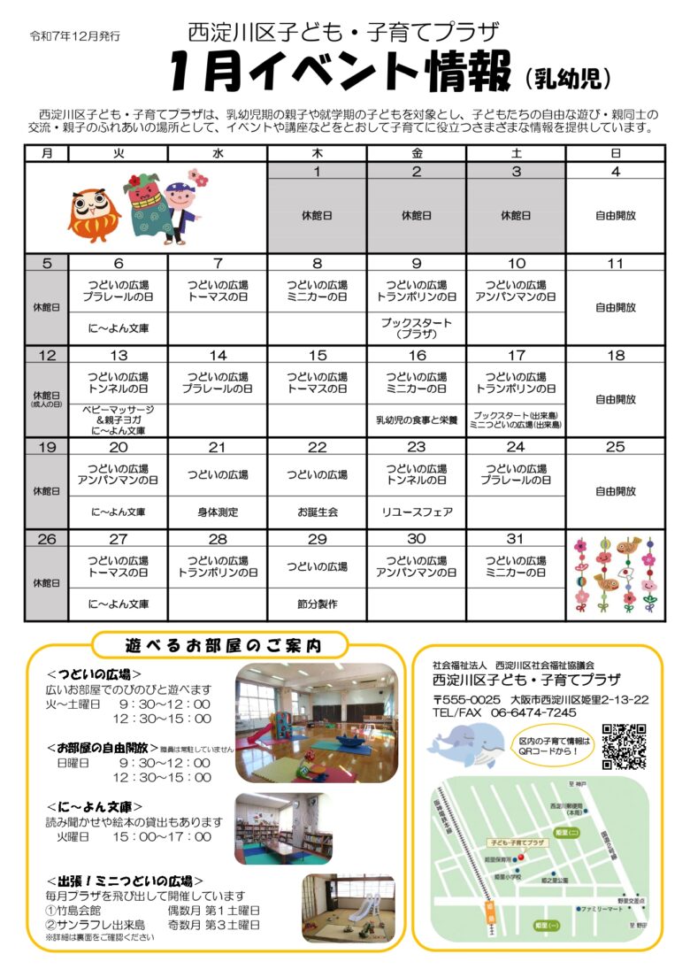 2026年1月号プラザだより 投稿日 2025年12月20日 著者 nishiyodo カテゴリー お知らせ カテゴリー プラザだより 1月のプラザだよりをアップしました。子ども・子育てプラザや各子育て支援施設、区役所等でも配布しています。ぜひ、お立ちよりください♪ イベント情報(乳幼児) 202601_tudoiダウンロード イベント情報(小中高生) 202601_jidoダウンロード