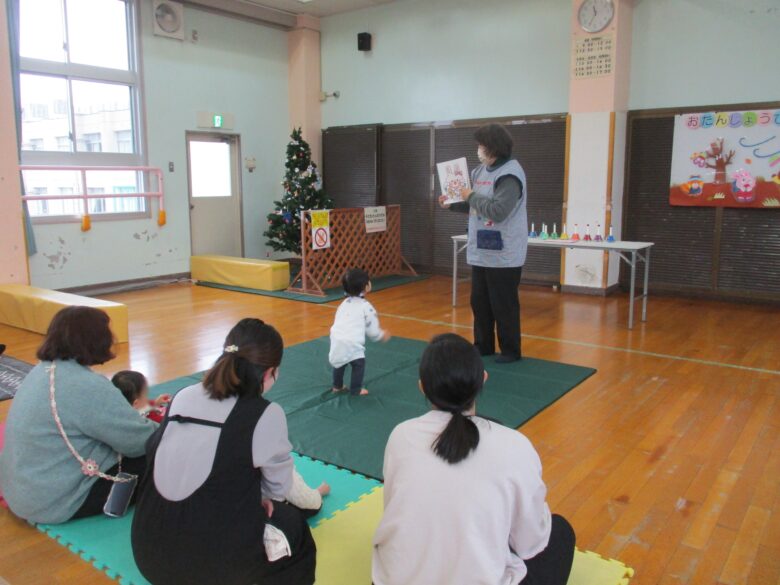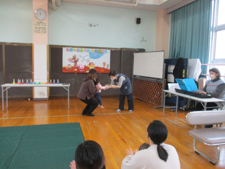 <レポート>12月生まれお誕生会 投稿日 2026年1月10日 著者 nishiyodo カテゴリー プラザ抽選結果&レポート 開催日2025/12/25時間11:30~11:50参加者計12名(乳幼児6名 保護者6名)12月25日に12月生まれの子どもたちのお誕生会をしました。ちょうどクリスマス当日だったので、クリスマスの曲をハンドベルで演奏してお祝いをしました。ベルの音色が心地よかったのか、みんなとても静かに聞いてくれました。帰るときに少しだけハンドベルを出しておき、子どもたちが触れるようにしたところ興味を持った子が楽しんでいましたよ。とても落ち着いた雰囲気の12月のお誕生会でした。