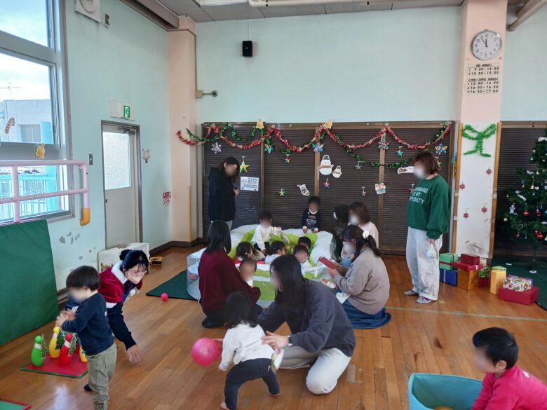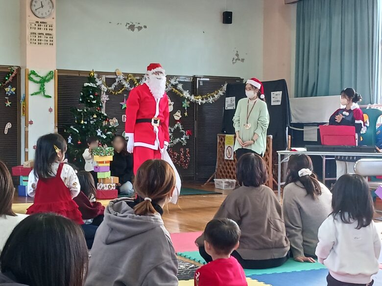 <レポート>クリスマス会 投稿日 2026年1月14日 著者 nishiyodo カテゴリー プラザ抽選結果&レポート 開催日2025/12/11時間11:20~12:00参加者25組 計56名(乳幼児31名 保護者25名)クリスマス会が始まるまでは、いつもとちょっと違う遊びやフォトスポットでの撮影を楽しまれていました。クリスマス会では、クリスマスをテーマにした手遊びや大型絵本の読み聞かせ、リトミックを行いました。会の最後にはサンタさんも登場し、参加してくれた子どもたち一人ひとりにプレゼントを渡してくれ、希望した子どもと写真撮影もしてくれました。