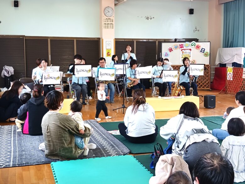 <レポート>音楽の日 投稿日 2026年3月14日 著者 nishiyodo カテゴリー プラザ抽選結果&レポート 開催日2026/2/28時間10:30~11:00講師吹奏楽団アンサンブル・ウペポのみなさん参加者19組 計47名(乳幼児27名 保護者20名)プラザに吹奏楽団アンサンブル・ウペポさんに来てもらい、迫力の生演奏を披露して頂きました。つどいの広場で流れている曲や、アニメの親しみのある選曲で知っているメロディに触れて、参加者はリズムに乗って楽しい時間を過ごすことが出来ました。ウペポさんから参加者全員にマラカスのプレゼントが有り、子どもたちも喜んで演奏に参加することが出来ました。