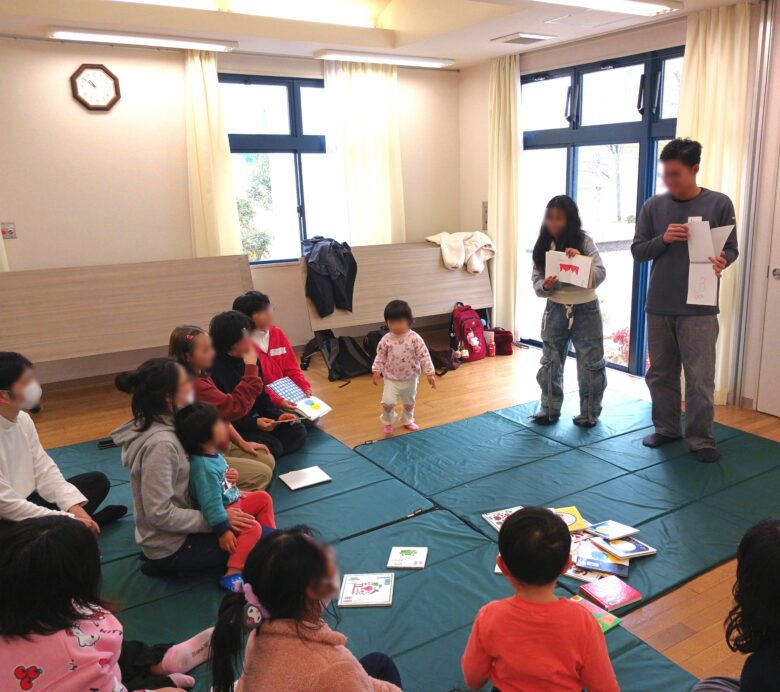 <レポート>多文化交流会 投稿日 2026年4月1日 著者 nishiyodo カテゴリー プラザ抽選結果&レポート 開催日2026/3/14時間10:30~12:30場所サンラフレ出来島10号棟第1集会所参加者3組 計19名(子ども3名 大人10名 大阪国際外語学院のみなさん6名)大阪国際外語学院の皆さまにご協力いただき、多文化交流会を開催しました。「こぶた・たぬき・きつね・ねこ」の手遊びを日本語とミャンマー語でしたり、日本語の絵本をミャンマー語に訳した手作り絵本の読み聞かせもありました。お互いの国の文化を知ることが出来たたのしい会になりました。