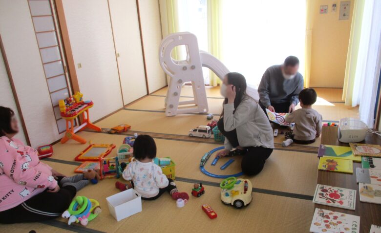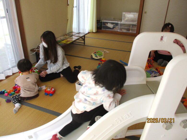 3月21日にミニつどいの広場をおこないました。この日は2組のご家族が参加してくださいました。たまたまお子さんが二人とも同じ年だったためか、一緒に遊んだりおもちゃの取り合いをしたりしながらのかかわりを持つ場面も見られました。次回は5月16日です。集会室の洋室でおこないますので、ぜひお越しください。