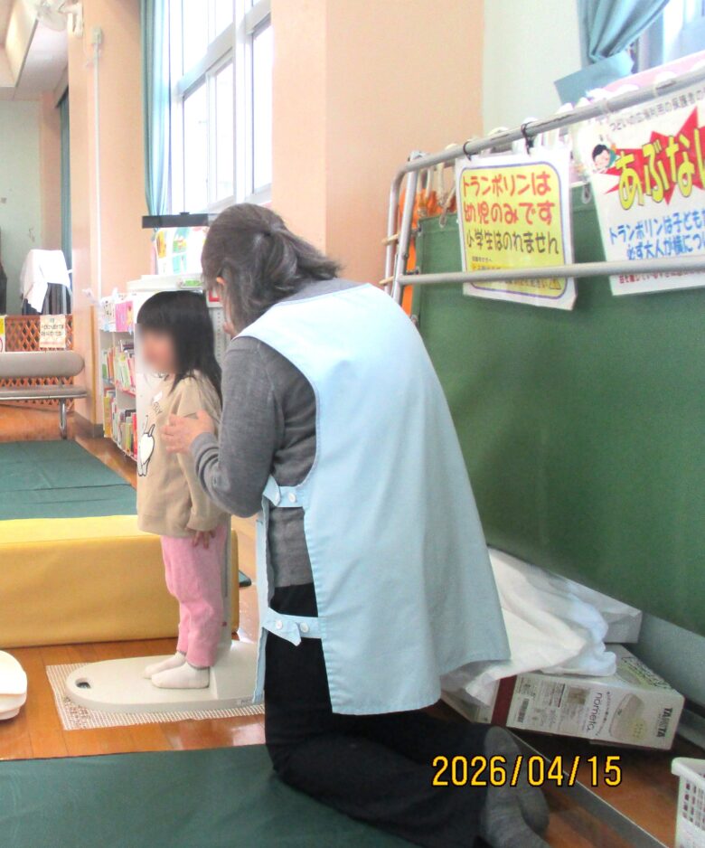 <レポート>身体測定の日(4月) 投稿日 2026年4月24日 著者 nishiyodo カテゴリー プラザ抽選結果&レポート 開催日2026/4/15時間10:00~11:30参加者乳幼児16名 保護者14名 計30名4月15日に今年度初めての「体重測定」をおこないました。身長の測定を嫌がる子が多く、今年度から「希望者のみ身長も測る」ということにしましたが、今回は全員が希望されたのでみんな測りました。「このイベントのためにプラザに初めて来た」という方も多く、測定記録表をお渡しするとみなさん喜んでおられました。1歳になっていない子も多く、「ブックスタート」や「ベビーマッサージ&親子ヨガ」の案内をすると帰りに申し込まれた方もおられました。赤ちゃんを連れて外に出ることはいろいろと大変だと思いますが、保護者の方の気分転換にもなると思うので、このようなイベントを利用していただけたら…と思います。「体重測定」は今年度は2か月に1回のイベントなので、次回は6月17日です。ぜひお越しください。