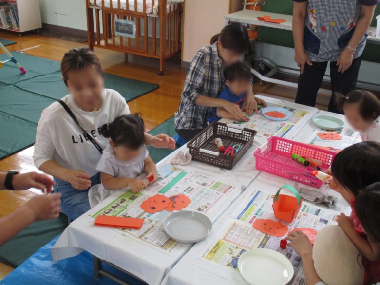 <レポート>製作の日(10月) 投稿日 2025年10月18日 著者 nishiyodo カテゴリー プラザ抽選結果&レポート 開催日2025/10/3時間10:00~11:50 13:00~14:50参加者 計34名(乳幼児18名 保護者16名) 10月3日にかぼちゃのお菓子入れの製作をしました。子どもたちはかぼちゃの顔を描き、保護者の方が入れ物を作り、それを合体して完成させました。1歳児の子はなぐり描きを楽しみ、2歳児の子は「顔」を意識して描いているところに子どもたちそれぞれの成長を感じました。帰るときは1歳児の子でも自分が作ったものを指さして取り、嬉しそうに手にかけて帰っていきました。