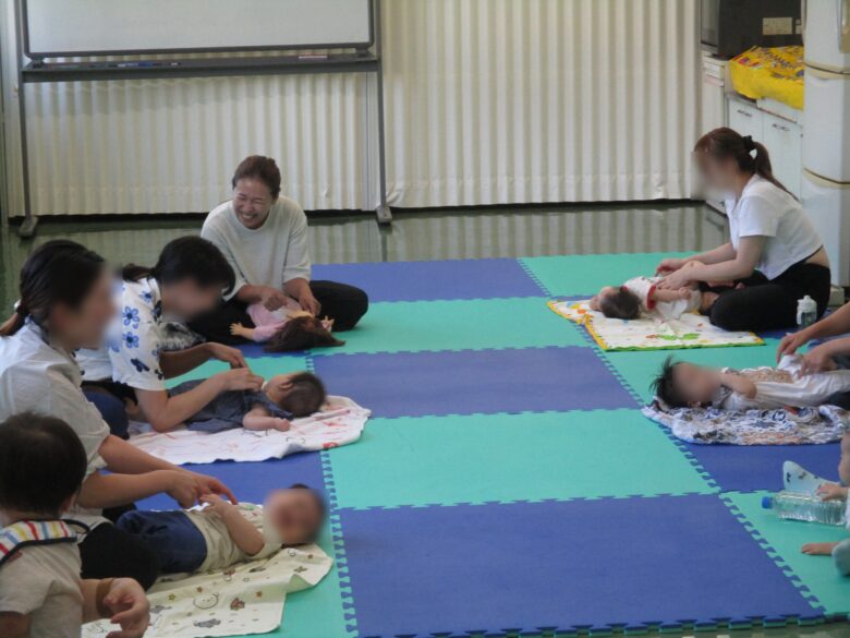 生後4か月から10か月までの子どもたちが参加しているのですが、「今回が最後なんです」と言われる方もいました。当初、首は座っているけれどまだ自分で身体を動かしての移動が出来なかった子が、自分の意思を表して好きな所に行こうとしていることに、子どもたちの成長の早さとすごさを感じました。次回は11月11日です。ぜひお越しください。
