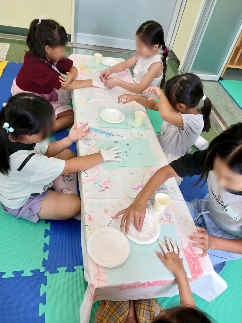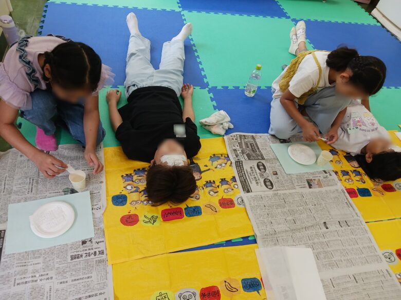 1・2年生は手形を、3・4・5年生は面を、石こうが硬化するまでの感触に戸惑いながらも、形が出来る工程を楽しみました。