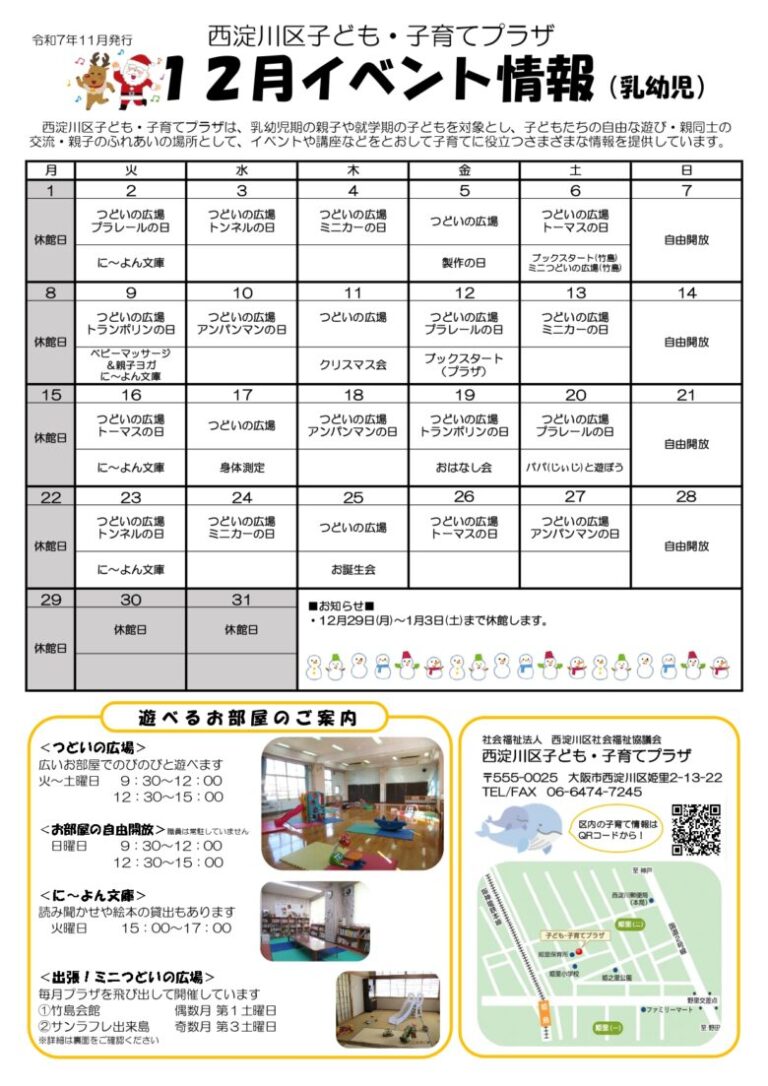 12月のプラザだよりをアップしました。子ども・子育てプラザや各子育て支援施設、区役所等でも配布してい […] -